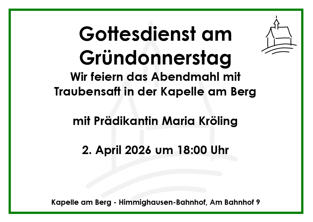 Die Kapelle am Berg in Himmighausen-Bahnhof ist am 24. August 1933 eingeweiht worden. Protestantische Gottesdienste hatten aber schon ab 1916 wegen der Zunahme der evangelischen Bevölkerung, vor allem aufgrund des Zuzugs von Eisenbahnmitarbeitern stattgefunden.